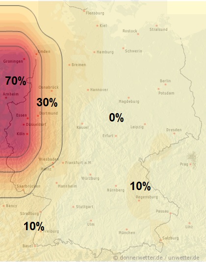 Gewitterrisiko am Mittwoch Abend 18 bis 22 Uhr