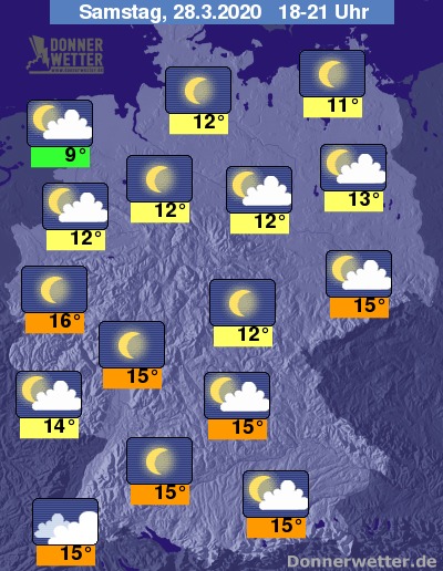 Heute Abend ist der Himmel sternenklar oder es ziehen nur lockere Wolken durch. Gebietsweise stark bewölkt ist es am Alpenrand, jedoch bleibt es auch hier trocken. Die Temperatur liegt bei 9 Grad in Cuxhaven und bis zu 16 Grad in Köln.