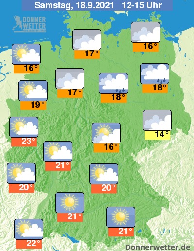 Heute Nachmittag ist es im Norden und Osten meist stark bewölkt, dabei bilden sich einzelne Schauer. Weiter nach Südwesten hin zeigt sich das Wetter hingegen meist heiter bis sonnig, hier und da können aber auch einige Wolken durchziehen, dabei bleibt es trocken. Die Temperatur liegt bei 14 Grad in der Lausitz und bis 23 Grad im Rheinland.