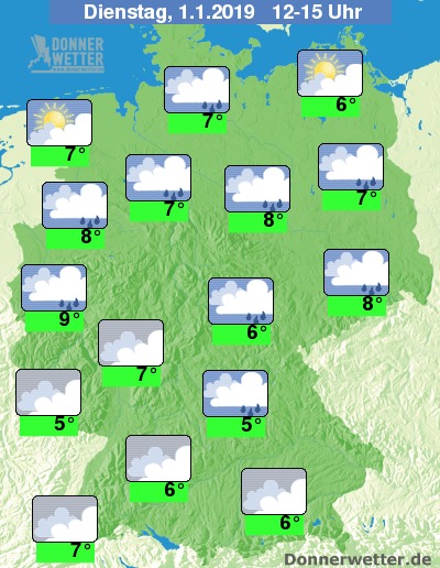 Im Norden und in der Mitte fällt aus einer kompakten Wolkendecke gelegentlich Regen. Im Süden bleibt es zunächst noch größtenteils trocken. Später lockert die Wolkendecke an den Küsten auf und die Sonne lässt sich eine Weile blicken, bevor jedoch neue Schauerwolken von der Nordsee und Dänemark her aufziehen.