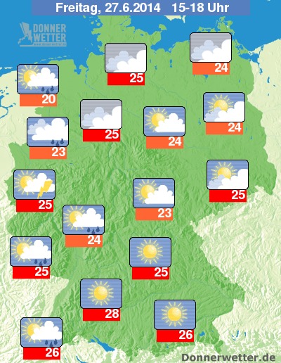 Heute Nachmittag ziehen von den Niederlanden, Belgien und Frankreich her vielfach dichte Quellwolken mit Schauern und möglichen Gewittern ostwärts. In der Osthälfte bleibt es dagegen noch vielfach freundlich und trocken. Die Temperaturen liegen mit 20 Grad in Ostfriesland und gut 28 Grad in Schwaben auf einem meist sommerlichen Niveau.