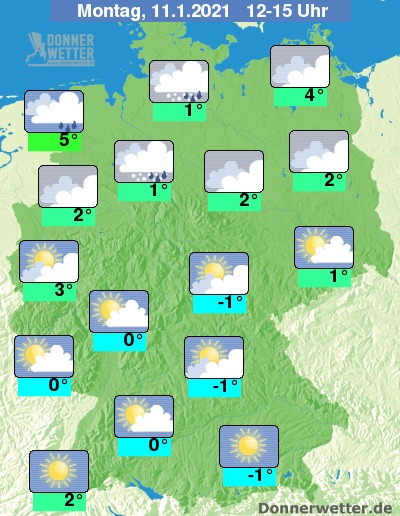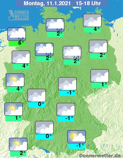 Im Norden Deutschlands bleibt der Himmel dagegen ganztägig stark bewölkt oder bedeckt und zeitweise muss mit Regen-, Schneeregen - oder Schneeschauern gerechnet werden. Örtlich besteht Glättegefahr! Es weht zudem ein starker bis stürmischer Wind, in exponierten Lagen auch Sturmböen.