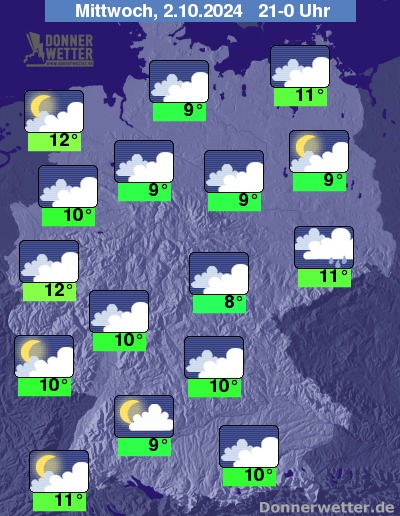 Am Mittwochnachmittag zeigt sich der Himmel verbreitet wechselnd bis stark bewölkt, Auflockerungen sind vor allem im Südwesten und an der Nordseeküste möglich. Hier bleibt es auch meist trocken, sonst  fällt am Alpenrand sowie im Südosten zeitweise Regen, auch in den übrigen Landesteilen muss am Nachmittag zeitweise mit Schauern gerechnet werden.