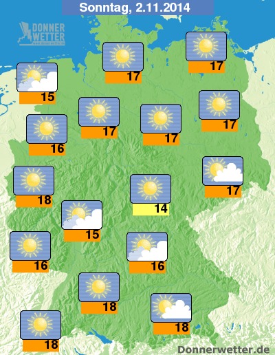 Tagsüber werden 15-18 Grad C erreicht. Mehr unter unserem Deutschlandwetter.