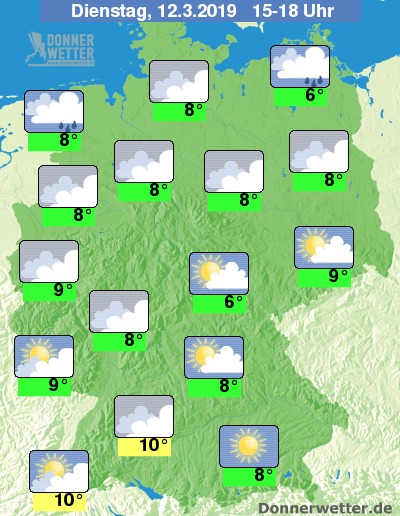 Die Temperaturen erreichen im Laufe des Nachmittags Werte zwischen 6 Grad in Mecklenburg-Vorpommern und 10 Grad im Südwesten.
