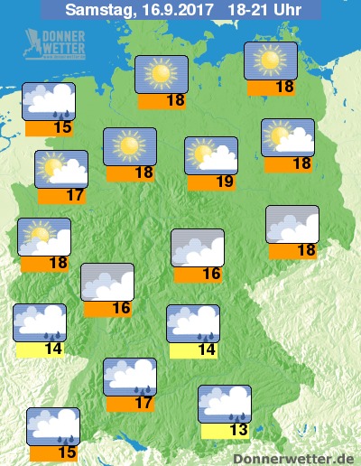 Am Abend bleibt die Südhälfte der Republik überwiegend wolkenverhangen und vor allem im Süden fällt zeitweise Regen. Weiter nach Norden hin ist es zum Großteil heiter bis sonnig, hier und da wechselnd bewölkt, jedoch trocken. Im Nordseeumfeld können dichte Wolken allerdings Schauer bringen. Die Temperatur liegt bei 13 Grad in Augsburg und bis 19 Grad in Magdeburg.