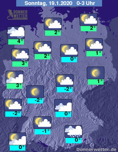 Häufig bewölkte Nachtstunden, Tiefstwerte um 5 bis -3 Grad.