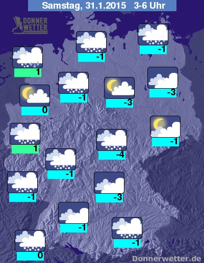 In der kommenden Nacht bleibt es überwiegend stark bewölkt und nur hier und da kann es auch mal auflockern, dabei fällt zunächst vor allem im Süden und Osten, gegen Ende der Nacht besonders in der Westhälfte des Landes Schnee. An der Nordsee ist teils auch Schneeregen oder Regen möglich. Es muss verbreitet mit Straßenglätte gerechnet werden. Die Tiefstwerte liegen bei 1 Grad an der Nordsee und -4 Grad im Coburger Land.