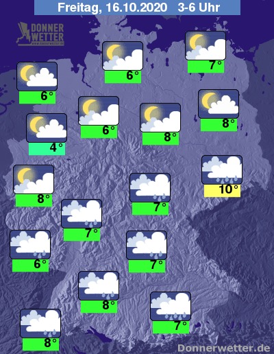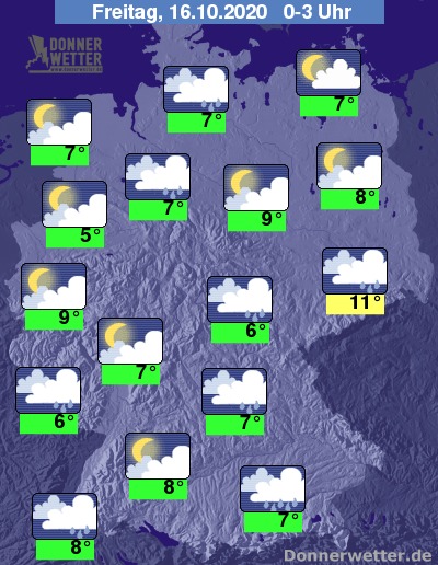 Während der zweiten Nachthälfte regnet es im Süden und in den östlichen Mittelgebirgen leicht bis mäßig weiter. Im Norden lassen sich zwischen den Wolken auch häufiger mal die Sterne blicken.