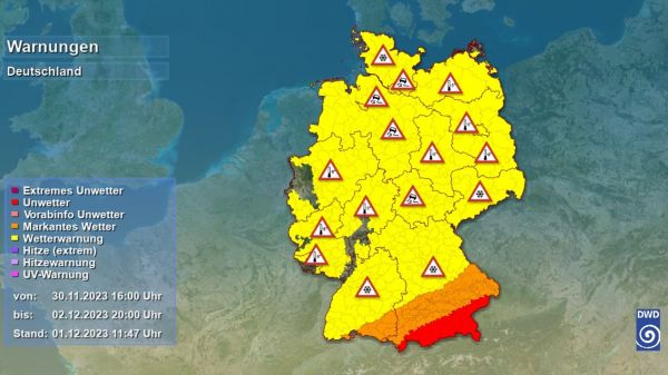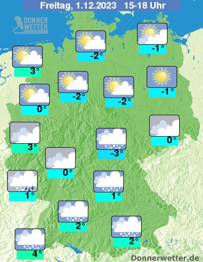 Unwetterwarnung für den Süden Bayerns, Höchstwerte am Nachmittag um -3 bis 4 Grad.