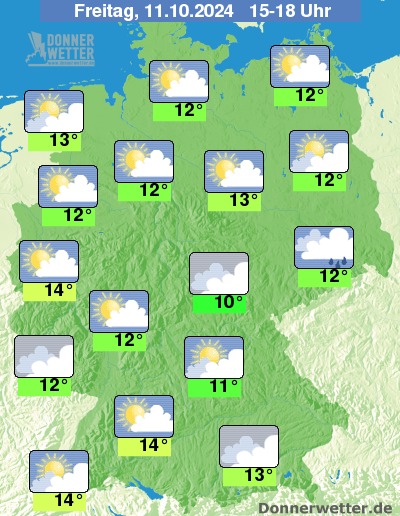 Am Freitagnachmittag zeigt sich der Himmel über weiten Landesteilen teils heiter, teils wolkig und es bleibt niederschlagsfrei. Stärkere Bewölkung hält sich in den nächsten Stunden vor allem vom Alpenrand bis nach Sachsen, hier muss zeitweise auch mit teils schauerartig verstärktem Regen gerechnet werden.