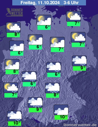 In der Nacht zum Freitag im Süden sowie an der Nordseeküste weiterhin schauerartiger Regen oder Schauer, dazwischen bleibt es bei überwiegend aufgelockerter Bewölkung meist trocken.