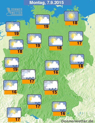 Am Montag ziehen vor allem über die Südwesthälfte Deutschlands oft viele und auch dichte Wolken, die zu einzelnen Schauern führen. Auch in Sachsen ist es zunächst noch oft stark bewölkt bei einzelnen Schauern. Weiter nach Norden und Osten hin zeigt sich neben den Wolken häufig die Sonne und es bleibt trocken. Die Temperatur steigt auf 15 Grad in Nürnberg und bis 19 Grad in Osnabrück.