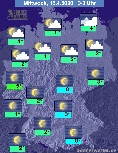 In der Nacht auf Mittwoch zeigt sich der Himmel über der Nordhälfte des Landes locker bewölkt, im Nordosten sind die Wolken häufig auch dichter. Im Südteil funkeln die Sterne von einem meist wolkenlosen Himmel. Schauer sind in der Nacht nicht zu erwarten.