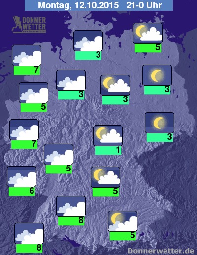Heute Abend ist es über der Westhälfte des Landes weitgehend bedeckt, aber trocken, weiter nach Osten hin können sich zwischen den Wolken noch häufig die Sterne zeigen und im äußeren Osten und Nordosten bleibt es meist auch noch sternenklar. Es bleibt trocken bei Abendwerten von 8 Grad im Oberrhreingraben und um 1 Grad im Grabfeld.