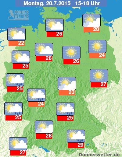 Heute Nachmittag scheint im Norden und vor allem im Osten Deutschlands häufig die Sonne und vielerorts ist es sogar wolkenlos, dabei bleibt es trocken. In der Südwesthälfte des Landes zeigen sich auch oft heitere Abschnitte, besonders im Westen, gebietsweise aber auch im Süden ziehen jedoch auch dichte Wolken durch und es können sich einzelne Schauer und regional auch Gewitter entwickeln. Die Temperatur steigt auf 20 Grad in Rostock und bis schwülwarme 29 Grad in München.
