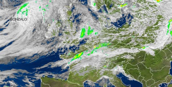 Das Satellitenbild zeigt Gonzalo auf dem Atlantik. Morgen besucht er uns dann.