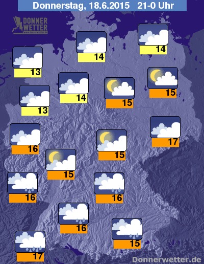 In der Nacht zum Freitag ist es sowohl im Alpenvorland als auch im Norden des Landes überwiegend stark bewölkt und es fällt zeitweise, im Norden gebietsweise Regen. Auch in Sachsen kann es bei dichten Wolken zeitweise regnen. In den übrigen Landesteilen zeigt sich der Himmel dagegen meist leicht oder aufgelockert bewölkt und es bleibt trocken. Die Temperatur sinkt auf 11 Grad am Bodensee und etwa 5 Grad am Pfälzer Wald.