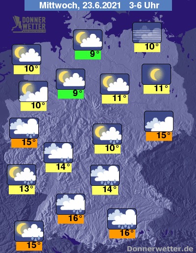 In der Nacht zum Mittwoch zeigt sich der Himmel über dem Norden oft gering bis locker, sonst aufgelockert bewölkt, dazu bleibt es trocken. Weiter nach Süden hin herrscht meist starke Bewölkung vor, hier und da zeigen sich auch Auflockerungen, allerdings sind regional Schauer möglich. Die Temperatur sinkt auf 16 Grad in Stuttgart und bis 9 Grad in Hamburg.