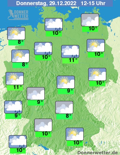 Heute Abend ist der Himmel über der Nordhälfte Deutschland teils stark, teils aufgelockert bewölkt, dazu bleibt es bis auf seltene Schauer trocken. Vom Südwesten des Landes bis in den Norden Bayerns und nach Thüringen fällt unter dichten Wolken verbreitet Regen. Im Südosten ist es wiederum meist trocken. Die Temperatur liegt bei 8 Grad in Wilhelmshaven und 11 Grad in Freiburg. Der Wind weht im Norden und Westen noch oft stark und teils stürmisch, an der Nordsee herrscht zum Teil Sturm.