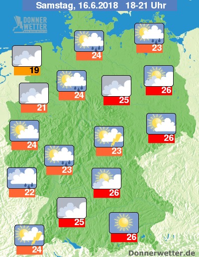 Heute Nachmittag ist es über dem Süden und Osten noch verbreitet heiter oder sonnig und dazu auch weitgehend trocken. Im übrigen Land ziehen hingegen mehrheitlich dichte Wolken übers Land hinweg, die auch einzelne Schauer und örtlich auch Gewitter bringen. Die Temperatur liegt bei 18 Grad in Cuxhaven und bis 27 Grad in Dresden.