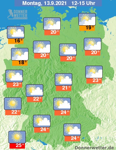 Heute Nachmittag zeigt sich der Norden Deutschlands häufig aufgelockert und auch stark bewölkt, weiter nach Süden hin ist es dagegen auch verbreitet heiter oder es zieht wechselnde Bewölkung durch. Es bleibt, abgesehen von vereinzelten Schauern an den Alpen landesweit trocken. Die Temperatur liegt bei 16 Grad an der Nordsee und bis 25 Grad im Breisgau.