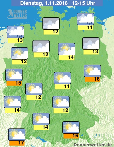 Heute Nachmittag ziehen im Norden von Norden her dichte Wolken auf und nachfolgend kommt hier Regen auf, dabei weht vor allem in Küstennähe ein teils starker bis stürmischer Wind! Weiter nach Süden hin ist es noch teils aufgelockert, im äußeren Süden auch noch oft locker bewölkt, jedoch nimmt auch hier die Bewölkung tendenziell etwas zu, dazu bleibt es aber trocken. Die Temperatur liegt bei 11 Grad in Rostock und bis 17 Grad in Freiburg.