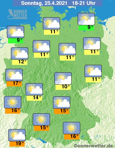 Heute Abend ist es weiterhin meist heiter oder sonnig, gebietsweise ist es auch stark bewölkt, dabei bleibt es trocken. Die Temperatur liegt bei 9 Grad an der See und bis zu 19 Grad im Breisgau.