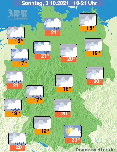 Heute Nachmittag ist es über Bayern noch zum Teil wechselnd bis aufgelockert bewölkt. In den übrigen Landestelen ist es verbreitet stark bewölkt, dabei fällt über der Nordwesthälfte gebietsweise Regen, sonst bleibt es trocken. Die Temperatur liegt bei 15 Grad in Wilhelmshaven und bis 23 Grad in München. An den Küsten ist es anfangs noch oft stürmisch, jedoch lässt der Wind auch hier im Verlauf nach.