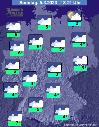 Heute Abend ist es weiterhin größtenteils bedeckt, an der Nordsee und über Sachsen fällt gebietsweise Schnee, Schneeregen oder Regen. Im übrigen Land bleibt es dagegen weitgehend trocken bei Werten von 2 Grad in Stralsund und bis 7 Grad in Freiburg.
