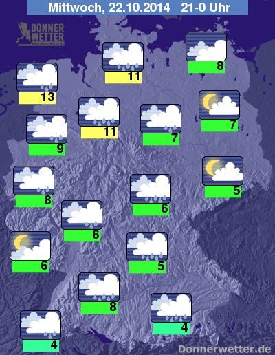 Heute Abend lässt der Wind insgesamt etwas nach, besonders auf den Bergen, sowie im Osten und Südosten des Landes weht aber noch häufig frischer bis starker und in Böen auch stürmischer Wind. Dabei bleibt es häufig stark, im Westen und Norden jedoch meist aufgelockert bewölkt, hier fällt gebietsweise etwas Regen, sonst fällt zeitweise und teils auch noch anhaltender Regen. Die Abendtemperatur liegt bei 13 Grad in Ostfriesland und bei sehr kühlen 4 Grad am Rande des Schwarzwaldes.