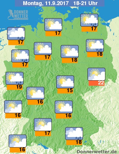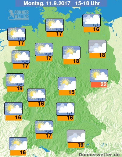 Am Nachmittag ist der Himmel über weiten Teilen Deutschlands locker oder aufgelockert bewölkt, dichtere Wolken ziehen vor allem über den Nordosten und Oberbayern hinweg. Mit Schauern muss am Nachmittag verbreitet gerechnet werden.