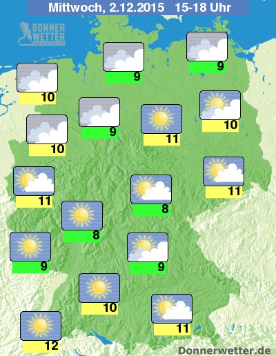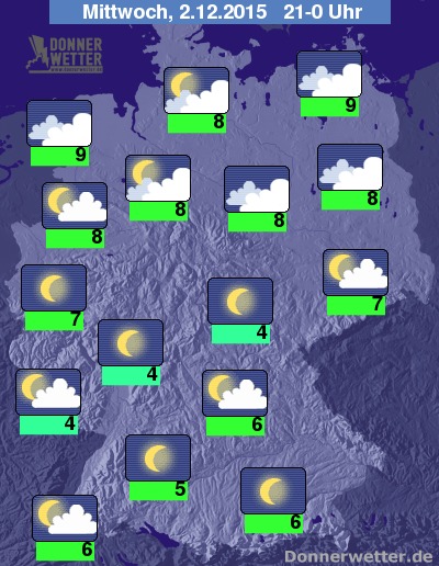 Heute Nachmittag ist es vor allem im Norden Deutschlands oft stark bewölkt, jedoch trocken, besonders im Südwesten und Süden der Republik ist es auch oft heiter bis sonnig, sonst um im übrigen Bundesgebiet ist es teils locker, teils stark bewölkt und ebenfalls trocken. Die Temperatur steigt auf 8 Grad in Oberfranken und bis auf 12 Grad im Breisgau. An Nord- und Ostsee weht ein teils starker Wind.