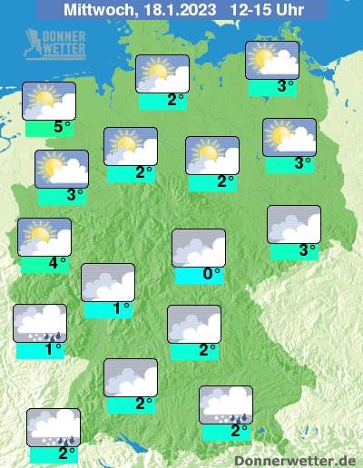 Heute Nachmittag bleibt es über der Südosthälfte Deutschlands weitgehend dicht bewölkt und im Alpenvorland sowie im Südwesten fällt zeitweise Schnee oder Schneeregen. Im Norden und Westen ist es häufig heiter oder es ziehen einige, meist aufgelockerte Wolken durch, dazu bleibt es weitgehend trocken. Die Temperatur liegt bei 0 Grad im Grabfeld und bis 5 Grad an der Nordsee.