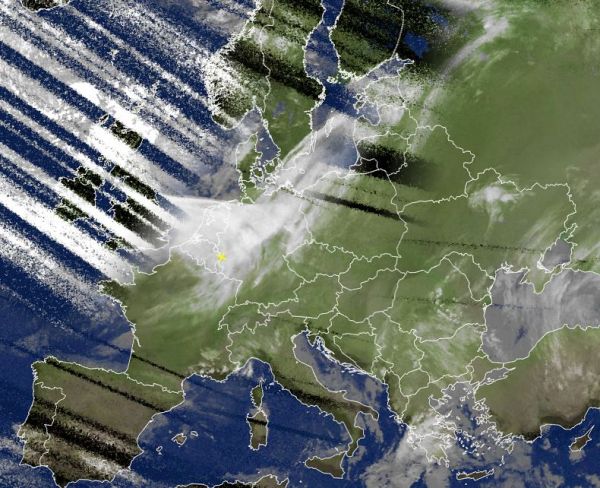 Das Satellitenfoto von Europa zeigt besonders über Benelux und weiten Teilen von Deutschland dichte Bewölkung, hierbei handelt es sich um einen Ausläufer des Sturmtiefs "Vanechka" vor der Küste Norwegens. Mit Ausnahme des süddeutschen Raums bringt der Tiefausläufer über dem Land heute verbreitet nasskaltes Wetter.