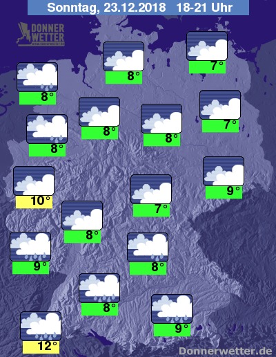 Heute Abend bleibt es überall stark bewölkt, dazu fällt über dem Süden und vom Niederhein bis ins Emsland zeitweise Regen, sonst bleibt es größtenteils trocken. Die Temperatur liegt bei 7 bis 12 Grad.