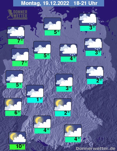 Heute Nachmittag kann sich nach Südwesten hin die Sonne zeitweilig zeigen, hier und im Süden bleibt es trocken. Im übrigen Bundesgebiet fällt bei dichten Wolken verbreitet Regen, der vor allem von der Landesmitte bis in die östlichen Landesteile noch auf vielerorts gefrorenen Boden trifft und zu extremer Eisglätte führen kann. Die Temperatur liegt bei -1 Grad in der Lausitz und bis zu 10 Grad im Breisgau.