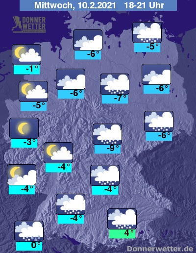 Heute Abend fällt vor allem über Süd- und Ostdeutschland weiterhin, teils langanhaltend Schnee. Über der Nordwesthälfte Deutschlands kann der Himmel dagegen auch immer wieder auflockern, zum Teil ist es aber auch hier stark bewölkt. Schneefall ist jedoch nur örtlich möglich. Die Temperatur liegt bei nur -9 Grad in Erfurt und bis 4 Grad in München.