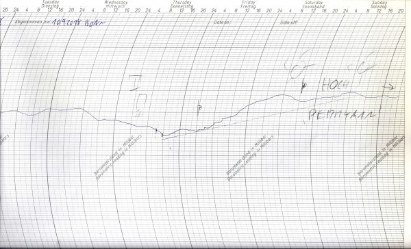 Unser Schrieb zeigt den Luftdruckverlauf an unserer Wetterstation in Bonn zwischen dem 3. und 9.9.2018.