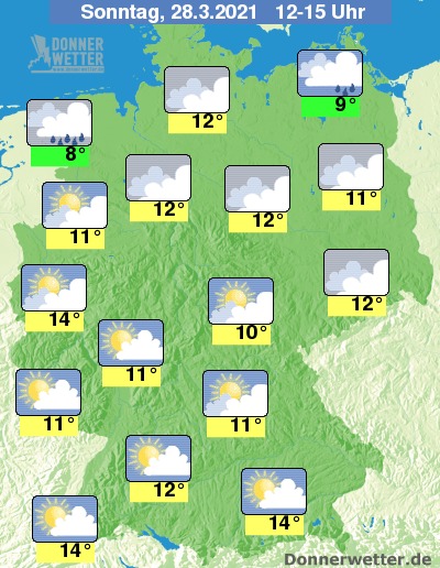Heute Nachmittag zeigt sich das Wetter im Süden und Westen oft heiter bis wechselnd bewölkt, vor allem im Norden und Osten ziehen dagegen überwiegend dichte Wolken durch, dabei fällt im Norden und Nordosten gebietsweise Regen, im übrigen Land bleibt es hingegen trocken. Die Temperatur liegt bei teils nur 8 Grad an der Nordseeküste und bis 14 Grad im Breisgau. An der Nordsee weht ein verbreitet stürmischer Wind.