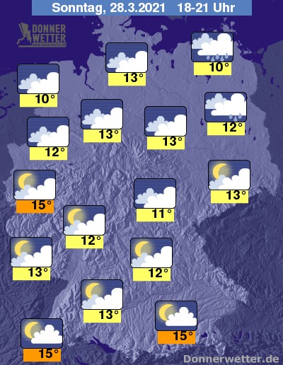 Heute Abend ist es im Norden meist dicht bewölkt, von Brandenburg bis nach Vorpommern fällt gebietsweise Regen. Im übrigen Land ist es oft aufgelockert, im Süden teils locker, sonst jedoch oft auch stark bewölkt, dazu bleibt es trocken. Die Temperatur liegt bei 10 Grad entlang der Küsten und bis 15 Grad am Rhein. An der Nordsee weht weiterhin oft stürmischer Wind.
