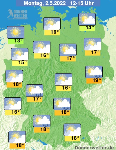 Heute Nachmittag ist es über dem Süden und über Sachsen teils stark, teils wechselnd bewölkt und es können sich einzelne Schauer bilden. Im übrigen Land ist es verbreitet heiter bis wechselnd, hier und da auch stärker bewölkt, aber weitgehend trocken. Die Temperatur liegt bei 13 Grad an der Nordsee und etwa 19 Grad in der Lausitz.
