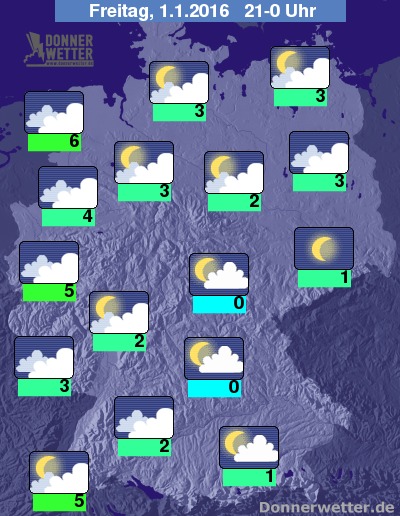 Heute Abend bleibt der Himmel über Sachsen und dem südlichen Brandenburg noch meist sternenklar, sonst ist es im Süden und Osten meist locker bis aufgelockert bewölkt und trocken. In den westlichen Landesteilen zieht sich der Himmel immer mehr zu, es bleibt aber trocken. In den übrigen Regionen ist es zumeist aufgelockert, teils aber auch stark bewölkt und ebenfalls trocken. Die Abendtemperatur liegt bei 6 Grad in Ostfriesland und um 0 Grad in Oberfranken.
