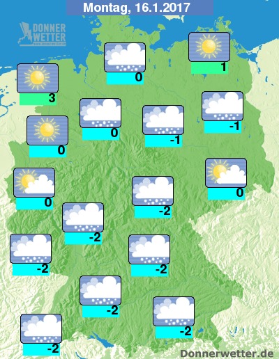 Heute ist es im Norden häufig sonnig, hier und da ziehen aber auch mal dichte Wolken mit Schneeschauern durch, sonst ist es hier aber weitgehend trocken. Weiter nach Süden hin ist es dagegen oft stark und zum Teil auch aufgelockert bewölkt, dabei fällt gebietsweise Schnee. Es besteht vielerorts Glättegefahr! Die Temperatur erreicht Werte zwischen -2 Grad im Vogtland und bis 3 Grad an der nördlichen Ems.