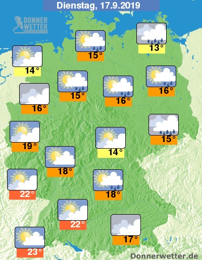 Am Dienstag kann sich besonders über der Südhälfte Deutschlands häufig die Sonne zeigen und es bleibt hier weitgehend trocken. Im Norden ist es überwiegend stark, zum Teil aufgelockert bewölkt, dazu sind einzelne Schauer zu erwarten. Die Temperatur erreicht 13 Grad in Stralsund und bis 23 Grad in Freiburg.