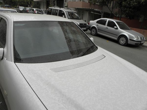 Viele Autos haben nach dem Wochenende Pollen und Saharastaub auf den Motorhauben und den Scheiben. Der Südwind brachte die warme und staubige Luft nach Deutschland.