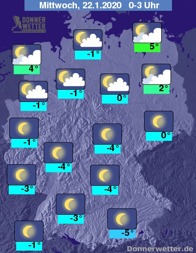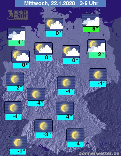 Tiefstwerte um 5 bis -4 Grad in den Nachtstunden.