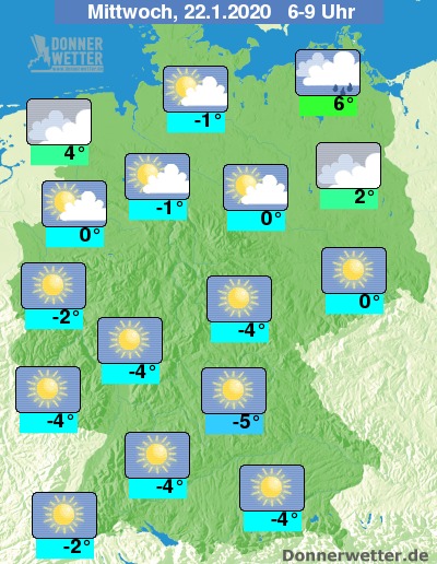 Die Temperaturen liegen in den Frühstunden bei Werten um -5 Grad in Mittelfranken und um 6 Grad an der Ostseeküste.