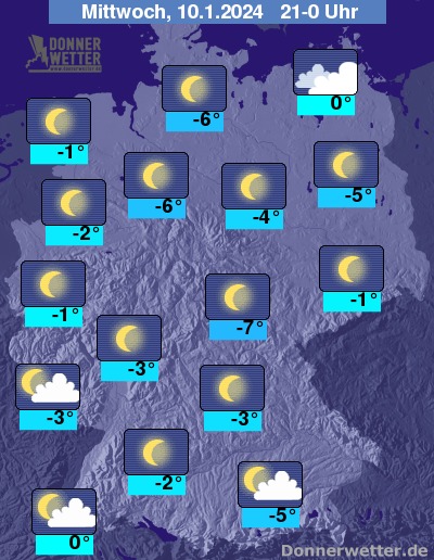 Am späten Abend und in der Nacht auf Donnerstag funkeln die Sterne über weiten Landesteilen von einem meist wolkenlosen Himmel; hochnebelartige Bewölkung beschränkt sich dann vor allem auf den Norden und Nordosten sowie das Alpenvorland. Es bleibt aber meist niederschlagsfrei.