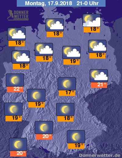 Die Temperaturen erreichen am Abend noch Werte um 22 bis 28 Grad C, am späten Abend kühlt es auf 17 bis 22 Grad C ab.